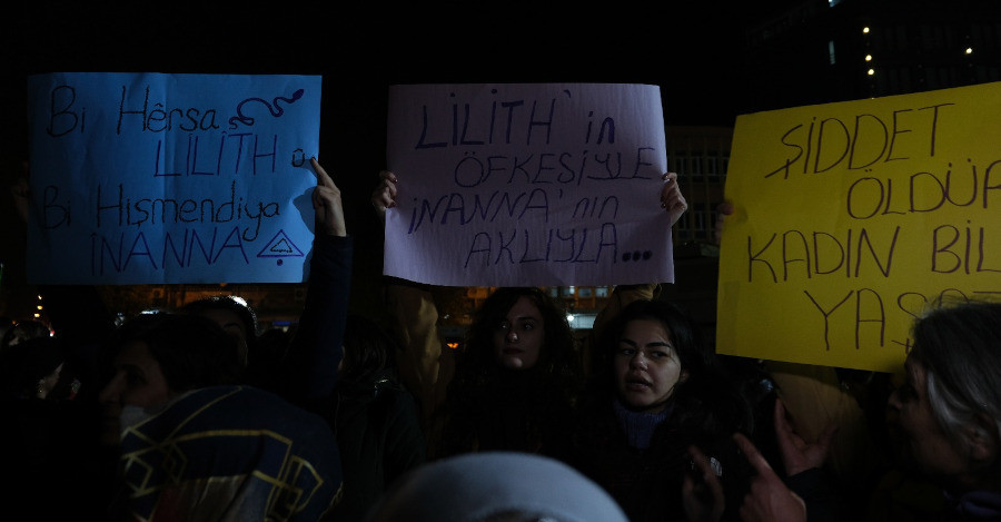 Dağkapı Meydanı’nda düdükler ve “Jin, Jiyan, Azadi” (Kadın, Yaşam, Özgürlük) sloganları ile bir araya gelen kadınlar polis ablukasına alındı. Polisin sık sık yaptığı “Bu eylem hukuksuzdur” ve “Terör örgütü sempatizanlarına ait sloganlar yasaktır” anonslarına abluka içinde bekleyişlerini sürdüren kadınlar sloganlar, zılgıtlar ve düdüklerle karşılık verdi.