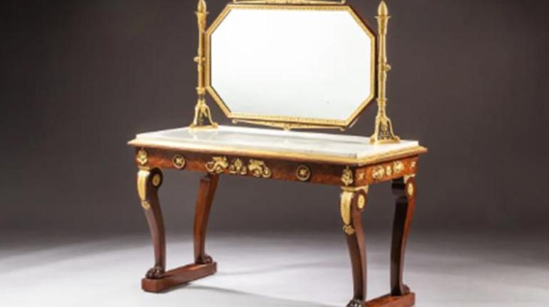 Josephine tarafından kullanılan yaldızlı bronz tuvalet masası 228 bin ila 456 bin dolar arasında listelendi. Napolyon tarafından 18 Mayıs 1804’te Fransa İmparatoru ilan edildiği yazlık konutu Chateau de Saint-Cloud için yaptırıldı.
