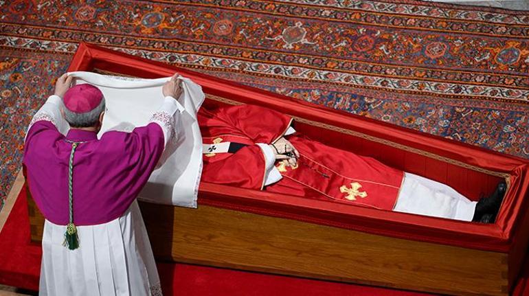 Papa’nın tabutu kapatıldı! Cenaze töreni için hazırlıklar tamamlandı, yüzüne beyaz örtü örtüldü
