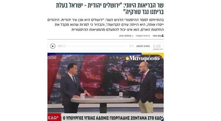 MİLLİYET.COM.TR / Yunanistan Sağlık Bakanı Adonis Georgiadis, canlı yayında yaptığı açıklamalarla büyük tepki topladı. Türkiye’yi doğrudan hedef alan Georgiadis, Kudüs’ün Yahudilere ait olduğunu öne sürerek İsrail’i Yunanistan’ın “en önemli stratejik müttefiki” olarak nitelendirdi.